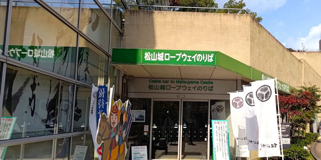 『大街道駅』から北方向に歩くこと20分、『松山城』に行くためのロープウェイ乗り場にたどり着きました。